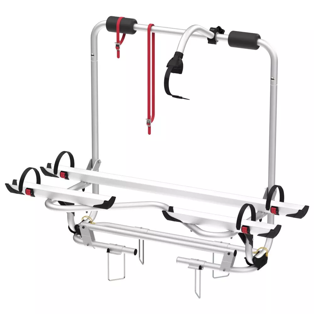 Serienmässig ausgestattet können 2 Fahrräder oder E-Bikes transportiert werden. Über optionales Zubehör kannst du den Träger jedoch zum Transport von 3 Velos aufrüsten. Für einen sicheren Halt während der Fahrt sorgen dabei die Sicherheitsriemen an den Radschienen und die Bike-Block Arretiervorrichtungen zum Fixieren der Velorahmen. Zudem bieten die Schutzpolster Schutz vor Kratzern und Stössen.