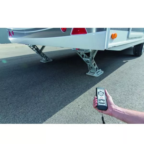 ALKO UP4 ist ein elektronisches Stützensystem für den Wohnwagen. Kein kraftaufwändiges Kurbeln per Hand mehr. Schnell, sicher und bequem schonen Sie hiermit Ihren Rücken und Ihre Nerven. Denn mit dem UP4 fahren Sie die Stützen vom Caravan kinderleicht per Fernbedienung hoch und justieren Sie auf den Punkt. Optimalen Stand und eine hohe Stabilität garantiert das System durch seine hochwertigen Premiumstützen mit montierten Big Foots. Ihre Nachbarn auf dem Campingplatz werden Sie beneiden. Die Stützen können jederzeit am AL-KO Chassis nachgerüstet werden. Das AL-KO UP4 Stützensystem ist schnell installiert und platzsparend verbaut. Für den Ernstfall, z.B. bei einer entladenen Batterie, ist eine manuelle Notentriegelung vorhanden.