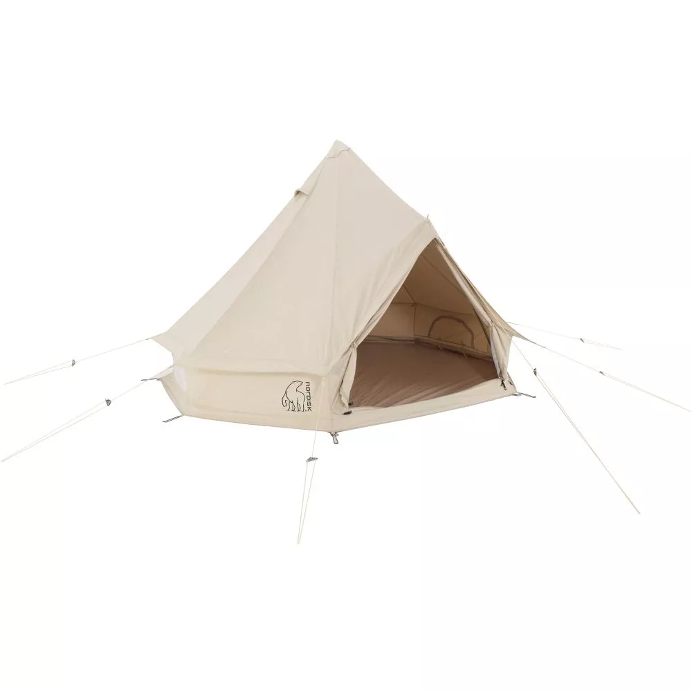 Das Glockenzelt Nordisk Asgard 7.1 ist ein kleines, klassisches Glockenzelt, allerdings mit der Atmosphäre eines grossen Modells. Ein grossartiges Zelt für 2-3 Schlafende, da es aufgrund der Mittelgestängekonstruktion sehr leicht aufzubauen ist. Die eingerahmte Tür hält die grosse Öffnung an Ort und Stelle – und die vertikalen Seiten ermöglichen eine volle Nutzung der Grundfläche, die über einen integrierten Zeltboden verfügt. Trotz seiner relativ geringen Größe verfügt es zudem über bodentiefe Fenster mit Mosiktonetzen, die für einen besseren Ausblick und eine gute Belüftung geöffnet werden können. Auch die Vordertür verfügt über ein integriertes Moskitonetz. Asgard 7.1 kann mit einer massgeschneiderten Kabine aufgewertet werden. Ein Zelt, das wahrlich hervorsticht.