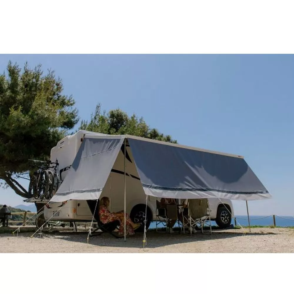 Die praktische Seitenwand Side Block von Fiamma in Kombination mit der Blocker-Vorderwand ist schnell montiert, schützt vor Sonne und Regen und sorgt für mehr Privathsphäre. Die Seitenwand ist serienmässig mit Alu-Spannstange und Erdnägeln ausgestattet. Dieses Markisenzubehör ist die einzige Version, die sowohl auf der linken als auch auf der rechten Seite passt.