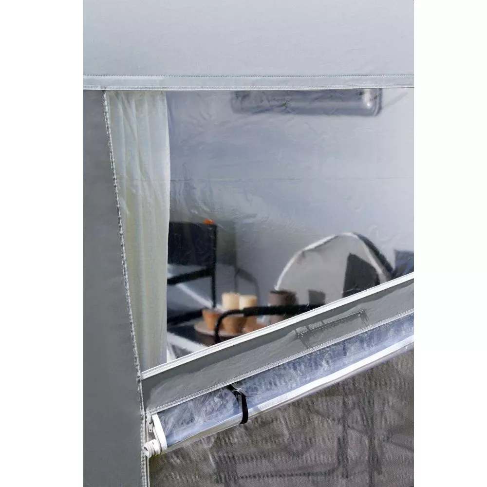 in der rechten Seitenwand befindet sich ein Moskitofenster, welches mittels Folienklappe geschlossen werden kann