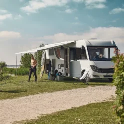 Motorisierte Dachmarkise Thule Omnistor 9200, Tuch: Mystic-grau, Gehäusefarbe: Creme-weiss
